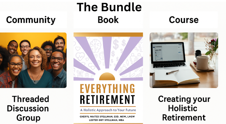 BundleIncludes the comprehensive planning guidebook Everything Retirement: A Holistic Approach to Your Future, the Holistic Retirement Planning Course + 12 months membership in the online supportive Community.